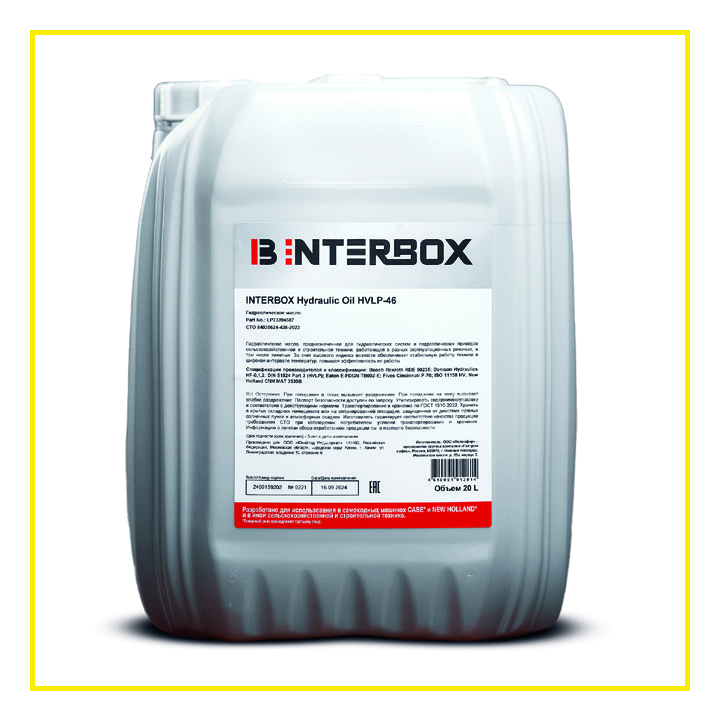 ПРИМЕНЕНИЕ: Масло INTERBOX Hydraulic Oil HVLP 46 предназначено для гидравлических систем и гидравлических приводов сельскохозяйственной и строительной техники, работающей в
